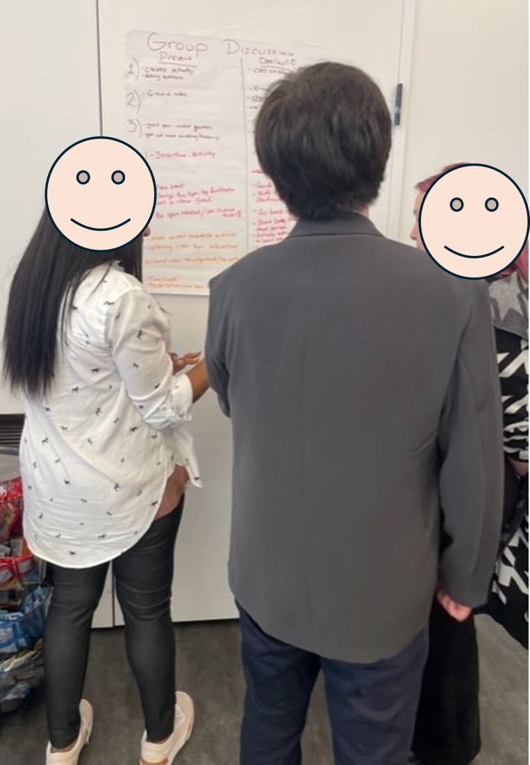 研修は必ず、クライアントのニーズに従って綿密に設計したアジェンダと時間配分に従って進めていきます。一方で、いざ研修を進めていくと、思わぬところで参加者の議論が深まって予定よりも長引いてしまったり、逆に反応が薄かったり、というケースも多々あります。これはファシリテーションスキルの一部でもあるのですが、綿密に作ったアジェンダがうまく進むよう、プロセスを管理しながらも、参加者の学びが最も深まるよう、その場の流れをしっかりと読み取りながら、必要ならば、もともと組んでいたプランは捨て、予定よりも時間をかけたり、逆にあるセクションは切り捨ててしまったり、あるいは予定していなかったコンテンツを即座に持って来たり、ということをその場で判断しながら進めていくこともあります。